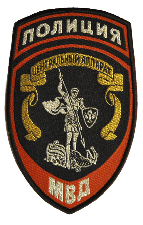 2."Центральный аппарат МВД России" - тканый нарукавный знак нового образца для сотрудников центрального аппарата.