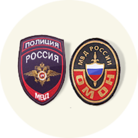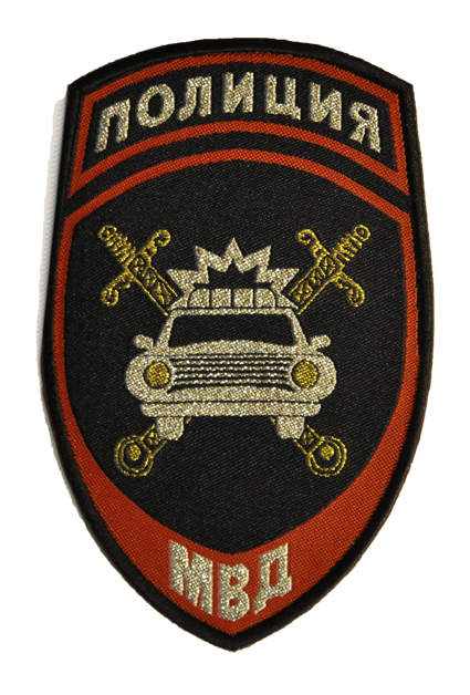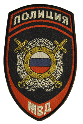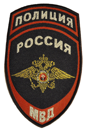 1. МВД России - тканый нарукавный знак используется сотрудниками, имеющими специальные звания полиции. Обозначает принадлежность к МВД Роcсии.